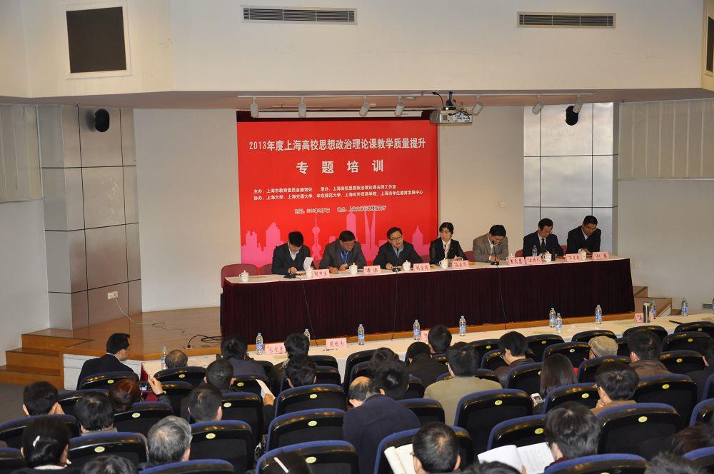 4月7日,2013年度上海高校思想政治理论课教学质量提升专题培训班在我校行政楼报告厅顺利开班。来自上海的近50所高校、140多位高校思想政治理论课骨干教师参加了培训。