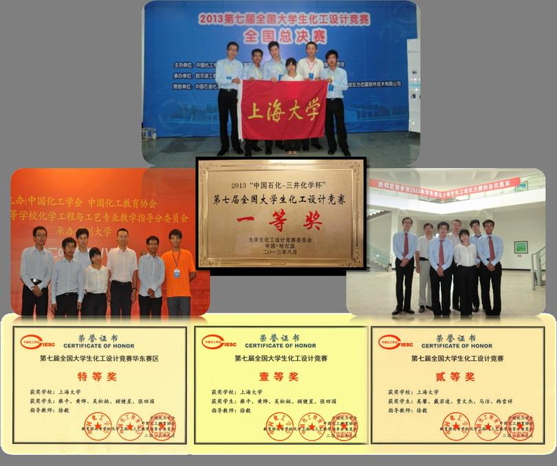 2013年8月22日,第七届“中国石化-三井化学杯”全国大学生化工设计竞赛全国总决赛在哈尔滨工程大学落下帷幕。我校环化学院以雍平为队长带领的“环五烷—III”团队继2013“立科杯”华东大学生化工设计竞赛暨第七届“中国石化-三井化学杯”全国大学生化工设计竞赛华东赛区预选赛获得特等奖之后,再次荣获全国总决赛一等奖,同时,大三学生奚馨带领的“SHU-光之队”也喜获全国二等奖。