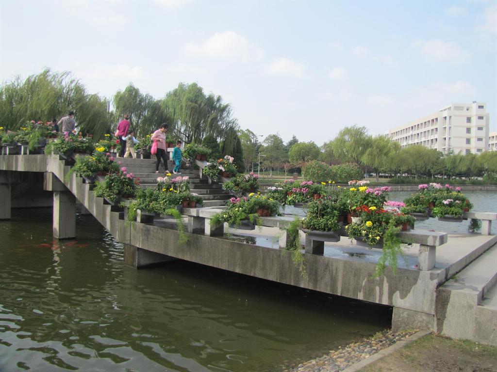 景点以花槽装饰桥栏,以塔菊、大立菊等布置在泮桥的路口两端。在秋日的阳光下,花开烂漫,菊色缤纷,寓意着我们新上大的建设在全校师生的共同努力下将更加美好和谐。