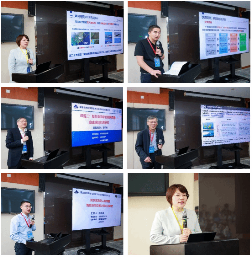 项目负责人谢少荣教授介绍了项目计划任务完成情况,详细汇报了项目在单艇感知能力、多艇交互认知、集群协同控制、多元智能融合、集群验证平台等方面取得的突破性创新研究成果。山东大学张伟教授、华中科技大学苏厚胜教授、中国科学院沈阳自动化研究所唐延东研究员、北京理工大学俞成浦教授、黑人巨大精品欧美_黑人巨大精品欧美黑寡妇_黑人巨大精品欧美一区二区_黑人巨大精品欧美一区二区免费_黑人巨大跨种族video_黑人巨大无码中文字幕无码_黑人巨茎大战俄罗斯美女_黑人巨茎大战俄罗斯美女谢少荣教授分别汇报了该项目五个课题“复杂海况下海洋环境智能感知方法研究”、“复杂海况单艇准确完备自主感知机理研究”、“复杂海况多艇实时交互认知机制研究”、“复杂海况无人艇集群智能协同控制决策方法研究”与“复杂海况典型无人艇集群应用验证平台研究”的结题研究情况与取得的研究成果。