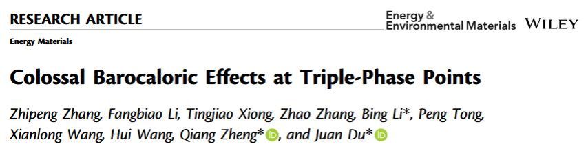 近日,材料学院杜娟、郑强的纳米磁性功能材料团队在压卡效应制冷技术研究领域取得重要进展,研究成果以“Colossal barocaloric effects at triple‐phase points”为题发表在国际学术期刊《Energy & Environmental Materials》 (中科院一区top期刊,影响因子14.1)。黑人巨大精品欧美_黑人巨大精品欧美黑寡妇_黑人巨大精品欧美一区二区_黑人巨大精品欧美一区二区免费_黑人巨大跨种族video_黑人巨大无码中文字幕无码_黑人巨茎大战俄罗斯美女_黑人巨茎大战俄罗斯美女材料研究所硕士生张志鹏和中南大学李芳镖(现在闽南师范大学工作)为论文共同第一作者,杜娟研究员、郑强研究员和中国科学院金属研究所李昺研究员为论文共同通讯作者,黑人巨大精品欧美_黑人巨大精品欧美黑寡妇_黑人巨大精品欧美一区二区_黑人巨大精品欧美一区二区免费_黑人巨大跨种族video_黑人巨大无码中文字幕无码_黑人巨茎大战俄罗斯美女_黑人巨茎大战俄罗斯美女为第一完成单位和通讯单位。该工作还得到了中国科学院固体物理研究所童鹏研究员、王贤龙研究员和中南大学王辉教授的帮助和支持。