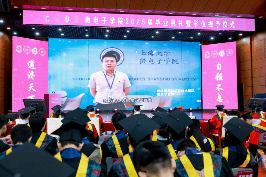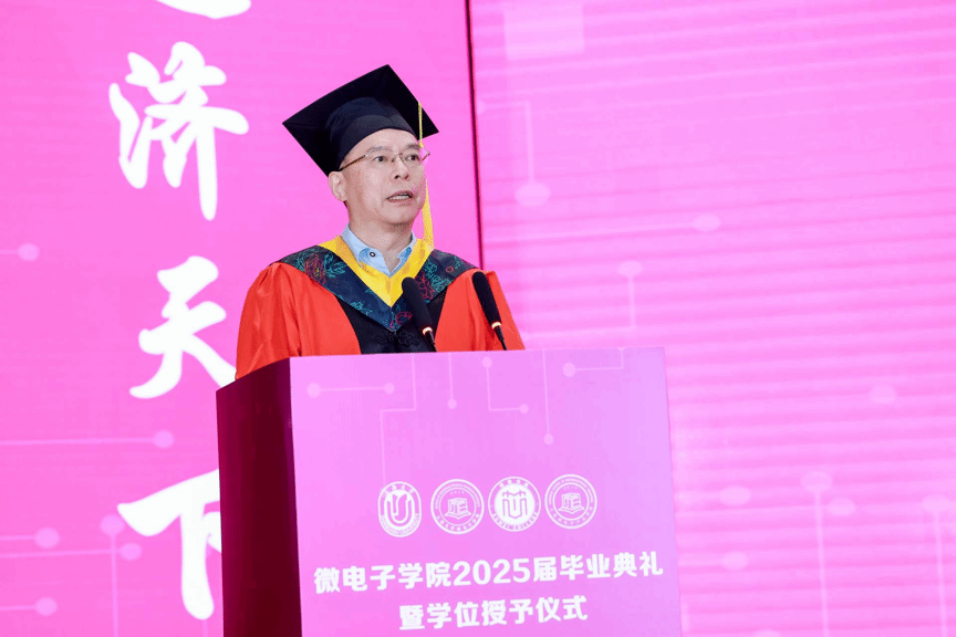 赵建龙在毕业典礼上深情寄语2025届毕业生,并提出三点殷切期望:一要"以国之大者立心",将个人理想熔铸于民族复兴伟业,在核心技术攻坚中彰显"位卑未敢忘忧国"的担当;二要"以奋斗之姿立行",在科技飞速发展的浪潮中,以"逢山开路、遇水架桥"的闯劲勇当开路先锋;三要"以时间之钥立恒",秉持"板凳甘坐十年冷"的坚守,在集成电路领域沉潜深耕。他强调,上大微电子人的血脉里流淌着钱伟长、谢希德等前辈"与国家同频、与时代共振"的红色基因,期待毕业生们以"知常明变者赢,守正创新者进"的智慧,在铸造“中国芯”的征程上成就绚烂的人生。